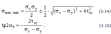 Напряженное состояние называется плоским или двухосным, если одно из главных напряжений равно нулю (рис. 3.3).