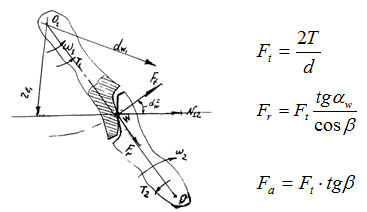 Осевая сила Fa, дополнительно нагружающая опоры валов, является недостатком косозубых передач.