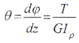 Если крутящий момент и величина GIρ, называемая жесткостью поперечного сечения при кручении, постоянны, для участка вала длиной l имеем: