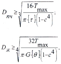- Проектировочный расчет, при котором вычисляются диаметры: