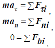 Спроецировав уравнение (1) на естественные оси координат, получим следующую систему уравнений