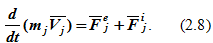 Приложим к точке Mj равнодействующую всех внутренних сил Fji и равнодействующую всех внешних сил Fje (рисунок 2.2). Для выделенной материальной точки Mj (как для свободной точки) запишем теорему об изменении количества движения в дифференциальной форме (2.3):